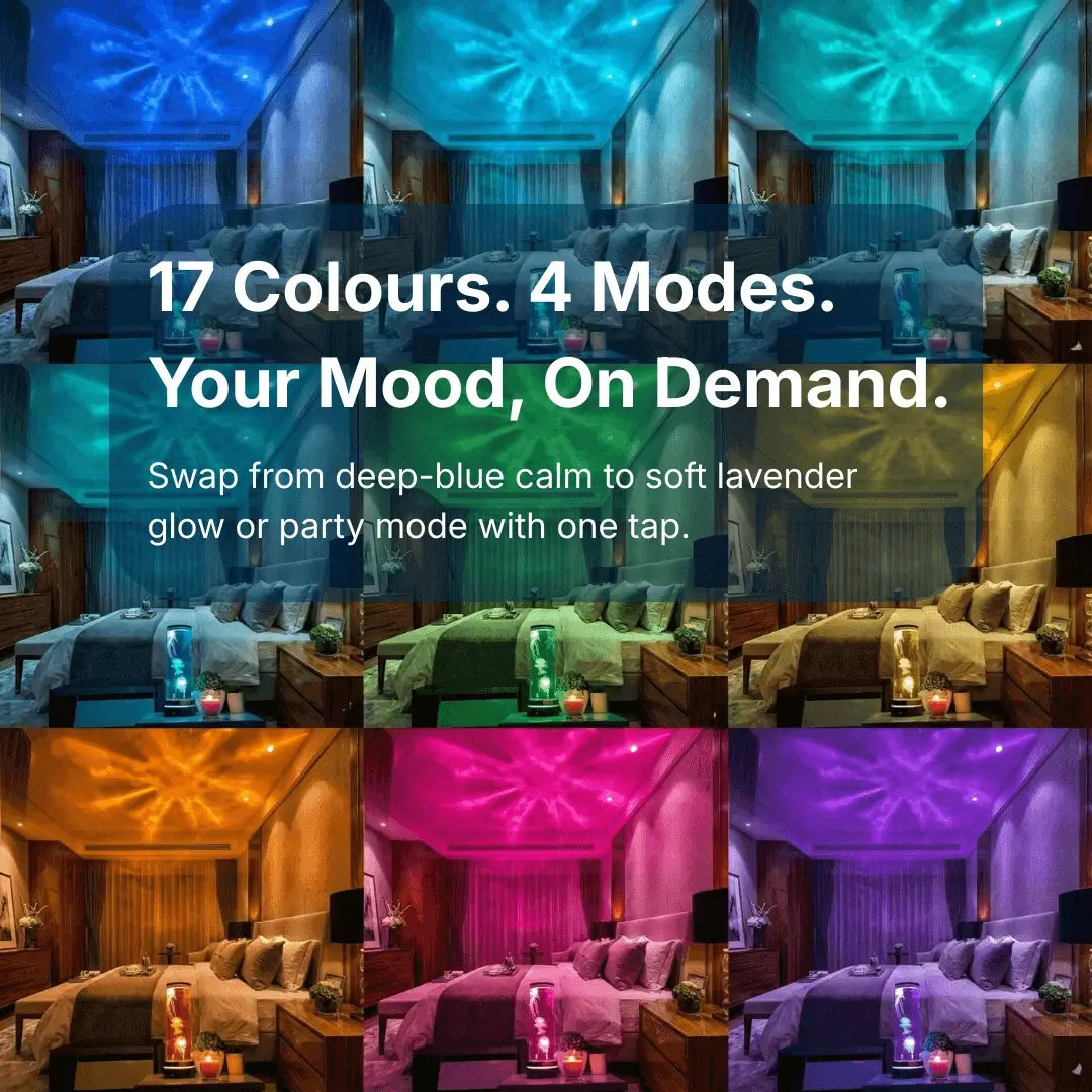Transform any room into a silent underwater escape with soft moving light, gentle “underwater” waves, and slow drifting jellyfish that help your mind finally slow down.